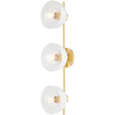 Collection: Belle, Material: Steel, Finish Color: Polished Nickel, Width: 6.25", Height: 16", Depth: 9.25", Backplate Width: 4.75", Lamping Type: Incandescent, Number Of Bulbs: 1, Wattage: 60 Watts, Moisture Rating: Damp Rated, Desc: Cool contrast and fine form play well together in Belle's striking silhouette. The aged brass frame pops against the glossy white shades, featuring exposed bulbs for a futuristic effect. This 3-light bath sconce can be installed vertically or horizontally.,