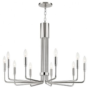 Collection: Brigitte, Material: Steel, Finish Color: Polished Nickel, Width: 31.75", Height: 24", Length: 32", Chain Length: 54", Lamping Type: Incandescent, Number Of Bulbs: 10, Wattage: 60 Watts, Dimmable: Yes, Moisture Rating: Damp Rated, Desc: Unlock the versatility of the pendant to give your space a fresh feel. How about one next to your bed or on either side of a mirror to light your morning wake-up routine? Stagger a few at different heights over your breakfast nook in a cluster or pop three over your kitchen island. They really can go everywhere. Assembly Required: TRUECanopy Included: TRUE / Canopy Diameter: 4.75 x 0.
