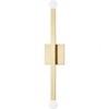 Collection: Dona, Material: Steel, Finish Color: Aged Brass, Width: 4.5", Height: 23.75", Depth: 2.25", Height From Outlet Box: 12.05", Backplate Width: 4.5", Backplate Length: 4.5", Lamping Type: LED, Number Of Bulbs: 2, Wattage: 4 Watts, Color Temperature: 2400 Kelvin, Lumens: 600, Dimmable: Yes, Moisture Rating: Damp Rated, Desc: