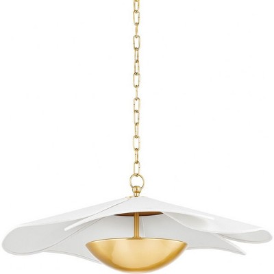 Collection: Evelyn, Material: Iron, Finish Color: Aged Brass, Width: 65.25", Height: 23.25", Lamping Type: Incandescent, Number Of Bulbs: 6, Wattage: 15 Watts, Moisture Rating: Damp Rated, Desc: Evelyn exudes understated elegance. Crisp white linen shades hang from mobile-style arms that have a subtle bow to them, giving the piece an enchanted feel. Touches of soft black in the aged brass body bring a pop of contrast to this sophisticated chandelier. Available in four and six-light options to elevate spaces of any size.,
