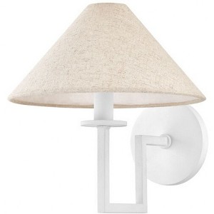 Collection: Gladwyne, Material: Steel, Finish Color: Textured White, Width: 9.75", Height: 10", Length: 16.14", Depth: 11.25", Backplate Width: 4.75", Lamping Type: Incandescent, Number Of Bulbs: 1, Wattage: 8 Watts, Moisture Rating: Damp Rated, Desc: The modern sculptural feel created by Gladwyne's clean lines and sharp angles is softened by the Natural Linen shade and Texture White finish. Make a sophisticated statement overhead or on the wall. The tonal color play blends with a variety of interior styles. Part of our Ariel Okin x Mitzi Tastemakers collection.,