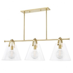 Mitzi Karin 3 - Light Island Pendant Light in Aged Brass Clear Shade