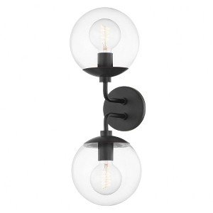 Collection: Meadow, Material: Glass, Finish Color: Old Bronze, Width: 7", Height: 20", Length: 8.25", Depth: 8.25", Backplate Width: 4.75", Backplate Length: 4.75", Lamping Type: Incandescent, Number Of Bulbs: 2, Wattage: 60 Watts, Dimmable: Yes, Moisture Rating: Damp Rated, Desc: Clear incandescent bulbs inside clear globe shades make Meadow the clear choice anywhere you want to add bright, beautiful light. A flash of metal at the shade cap and bulb base gives the piece a splash of color. Dimmable fixture Rated for both res