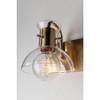 Collection: Riley, Material: Glass, Finish Color: Aged Brass, Width: 14.5", Height: 7", Depth: 7.75", Height From Outlet Box: 4", Backplate Width: 13.5", Backplate Length: 4.5", Lamping Type: Incandescent, Number Of Bulbs: 2, Wattage: 60 Watts, Dimmable: Yes, Moisture Rating: Damp Rated, Desc: Shade Included: TRUE / Designer: Mitzi. Room Recommendation: Bathroom / Assembly Required: Yes / Back Plate Height: 4.50 / Back Plate Width: 13.50 / Canopy Included: Yes / Canopy Diameter: 13.50 / Dimmable: Yes / Shade Included: Yes / Shade Dimensions: 3 x 5.75 x 6.75. ,
