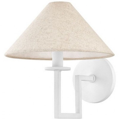 Collection: Robbie, Material: Steel, Finish Color: Polished Nickel/White, Width: 7.5", Height: 12", Depth: 8", Height From Outlet Box: 9.25", Backplate Width: 5.5", Backplate Length: 5.5", Lamping Type: Incandescent, Number Of Bulbs: 1, Wattage: 60 Watts, Dimmable: Yes, Moisture Rating: Damp Rated, Desc: Sconces are a throwback that remains vital in thoughtful design. Whether entertaining friends or staying in and catching up on you-time, sconces set to a dimmer switch* allow you to master the mood. Use them to playfully add personality to your space, taking it from functional to optimal along the way. *Lighting Tip 101: Sconces should always be wired to a dimmer switch. ;) Mounting Direction: Vertical / Assembly Required: TRUEShade Included: TRUE / Warranty: 1 Year Limited / Deisgner: Mitzi. Room Recommendation: Kitchen/Dining Room/Bedroom/Living Room/Entry/Foyer/Hallway/Office / Assembly Required: Yes / Back Plate Height: 5.50 / Back Plate Width: 5.50 / Dimmable: Yes /