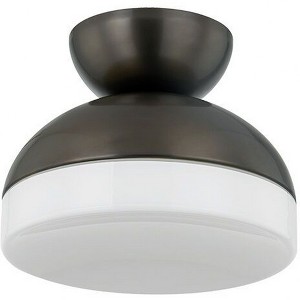 Collection: Rue, Material: Steel, Finish Color: True Bronze, Width: 11", Height: 8.75", Length: 12", Lamping Type: Incandescent, Number Of Bulbs: 1, Wattage: 15 Watts, Moisture Rating: Damp Rated, Desc: Playing with shape and scale, the stylish Rue features sleek inverted dome shades. The softly concaved glass combined with the clean geometry of the metalwork creates a fresh, contemporary appearance that enhances any space. Available as a flush mount, Rue sets the scene with soft downlighting.,