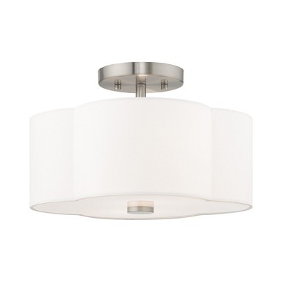 I purchased this light for my small living room. It arrived nestled in styrofoam and was well protected. The image shown is how it looks in real life. My reason for giving 4 stars is the lack of instructions. The only thing provided was a mounting diagram which didn't mention that the two canopy (base) mounting screws (which were already installed) would need to be adjusted prior to installing the canopy. It took quite a bit of wrestling and maneuvering to get the holes in the canopy and its backing insulation lined up over the mounting screws. Once I finally did and screwed on the mounting nuts, the canopy was not flush with the ceiling, which meant when the shade was mounted, it wasn't flush either. Because the nuts were the round, closed decorative type, they couldn't be screwed in any further. I was unwilling to go through the hassle of taking the canopy down to adjust the screws. The quick fix I figured out for this was to replace the closed nuts with open nuts that could be screwed as far up on the screws as necessary. Not sure why this type of nut wasn't included to begin with. Once I made this switch, I was easily able to get the canopy flush with the ceiling.