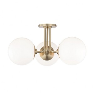 Mitzi Stella 3 - Light Semi-Flush Mount in Aged Brass White Shade