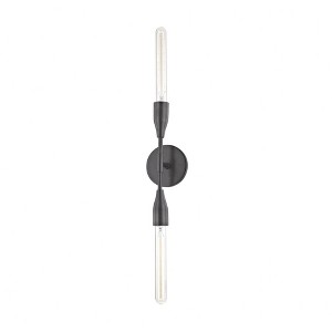Collection: Tara, Material: Metal, Finish Color: Old Bronze, Width: 4.75", Height: 30", Depth: 3.5", Height From Outlet Box: 15", Backplate Width: 4.75", Backplate Length: 4.75", Lamping Type: Incandescent, Number Of Bulbs: 2, Wattage: 75 Watts, Dimmable: Yes, Moisture Rating: Damp Rated, Desc: Designer: Mitzi.. Room Recommendation: Kitchen/Dining Room/Bedroom/Living Room/Entry/Foyer/Hallway/Office. / Assembly Required: Yes. / Back Plate Width: 4.75". / Dimmable: Yes. . ,