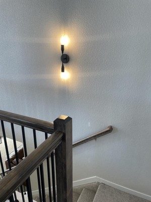 Bright, low profile, simple and modern sconce. We placed in in our stairwell. It is very bright! My only complaint is it is more of a greyish black rather than iron black. We did purchase the recommended bulbs, although the light also came with its own bulbs in the package.