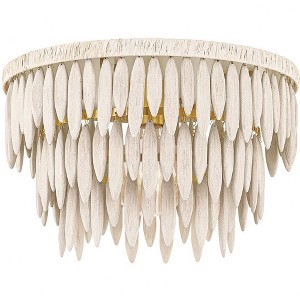 Collection: Tiffany, Finish Color: agedbrass_texturedcream, Width: 18.25", Height: 12", Lamping Type: Incandescent, Number Of Bulbs: 1, Wattage: 25 Watts, Moisture Rating: Damp Rated, Desc: This elevated organic design blends soft natural elements with an elegant, sculptural form. A series of elongated white-washed wood beads are arrayed in tiers around an Aged Brass framework. The top ring of the frame is wrapped in white raffia adding to the clean, fresh feel. The neutral tone makes it the perfect way to add an organic, coastal vibe to a space. Available as a semi-flush, pendant, and chandelier.,