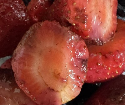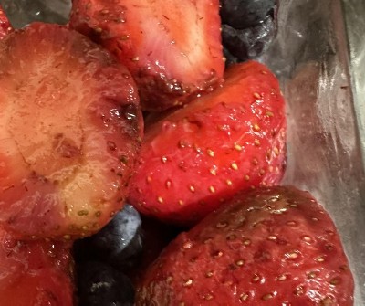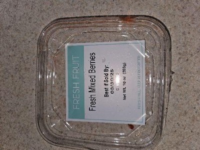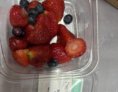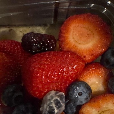 The strawberries are bad and the blueberries were soft and smashed. This should not be on the shelf for sale! They are on their way to being rotten.