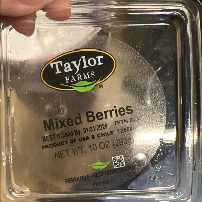 Purchased on 1/30 says good until 1/31. The strawberries were dried out and the blueberries were mushy. Both tasted off. They were not fresh.