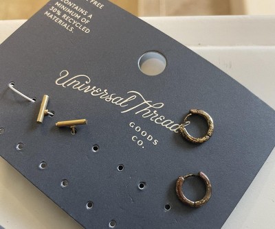 Add a variety of chic earrings to your on-trend ensembles with this 8-Piece Ear Cuff and Hoop Earring Set from Universal Thread™. This set includes hoop earrings in gold finishes for an elevated look plus gold-tone ear cuffs to style your upper ear without piercings. These earrings feature post closures for a secure fit, and the nickel-free metal makes them great for most skin types.