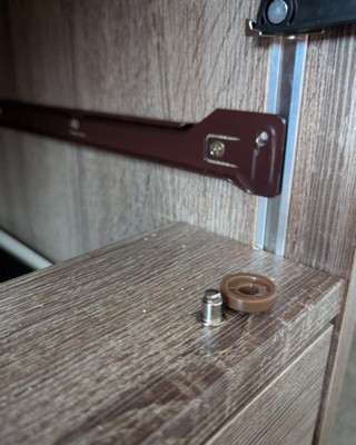 Slight (and I mean slight) downward pressure burst the weld on the drawer slide. Very poor quality weld and I'm sure terrible alloy. Hoping for a replacement drawer slide with better welds. Truly the only thing that matters on budget furniture is weld quality on things that move, that was not followed with this piece of furniture. One photo is the nonbroken left side, one photo is the broken piece on the right. Otherweise fine furniture for the price.