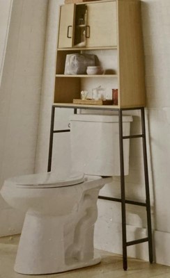 A: Hi Ali - Thank you for your interest in the Mixed Material Bath Etagere. The dimension for the toilet clearance height is 33.27 inches. Happy shopping! - Emma