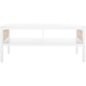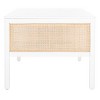 Make a warm and refined statement with our stylish Miya coffee table. Our sleek and streamlined coffee table stands out with a rich textural appeal. A beautiful rattan mesh is juxtaposed against a white and natural veneer to serve as a warm and inviting centerpiece. Its minimalistic profile evokes relaxed refinement to sit easily in your casual living space, family dens, and bedroom. Our coffee table features two large open shelves to keep your remotes, coasters, and other essentials within easy reach.