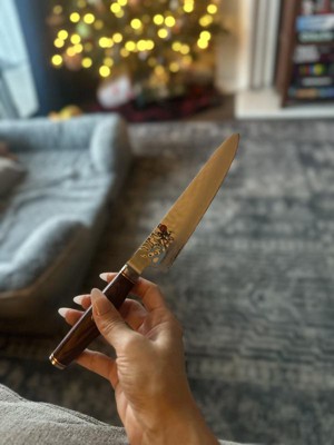 [This review was collected as part of a promotion.] I am so happy about my beautifully made, sharp, incredible knife. I love that it’s lightweight so all my cooking and chopping doesn’t strain my wrist/hand. It was pricier but I’m hoping you get what you pay for and the quality withstands the rest of time in the kitchen