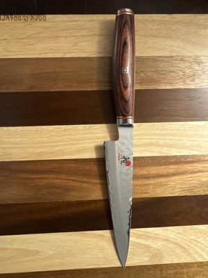 I have loved this Miyabi Artisan line for many years and slowly adding various knives to my collection. This third after the chefs knife and paring knife. I love the size of this for various activities and the sharpness is truly incredible!