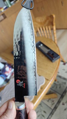 I'm new to Miyabi, I wanted some Japanese knives & did quite a bit of reading/homework before ordering. I ordered a set of 2 Artisan knives but will have to return that ( one of the knives in that set was the incorrect sku ), I placed a separate order for this 7" Artisan Santoku, the Knife arrived with 2 parallel scuff marks running the entire length of the blade. So both orders are a big disappointment, the scuffs are deep and cannot be easily buffed out. Needless to say I am not very impressed with the service and or quality..