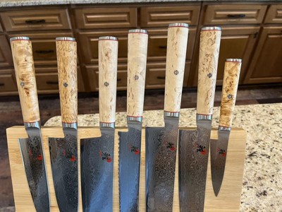 Knives are off convenient size light weight and extremely sharp. The Birch handles are a little ghostly without character until they are oiled, then they scream for attention.