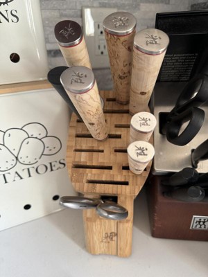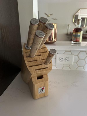 Beautiful Knife Set, I love the birchwood handle and the blade design. It cuts just as good as all ZWilling Products and comes with a bit more maintenance and care. After cooking for 20 years, this was a gift from my husband and I am so grateful to have this set.