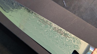 I just received this Miyabi Gyuto birchwood knife and immediately put it to the test. It cuts paper like butter, is extremely lightweight in comparison to my other Japanese knives (admittedly none is as high level as this one), and I am in love with the magnificent design. An excellent knife in all aspects.
