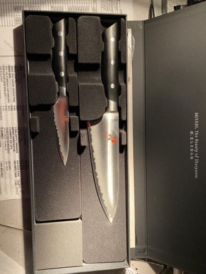 [This review was collected as part of a promotion.] I purchased the Miyabi Evolution 2 pc knife set for my new home. These knives are amazing. They cut with such precision and with minimal effort. This is one of the best investments I ever made.