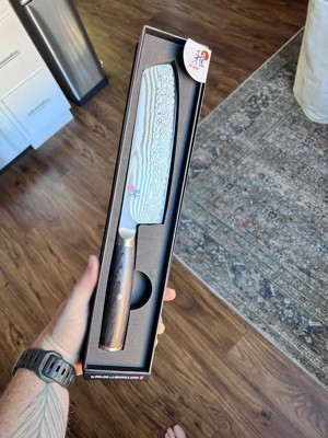 I bought this knife as a gift for my wife, and she absolutely loves it. It's incredibly sharp right out of the box and works perfectly for cutting all kinds of ingredients — from veggies to meat. It’s well-balanced, comfortable to hold, and makes food prep quicker and more enjoyable. Couldn’t be happier with this purchase! Highly recommend for anyone looking for a high-quality, all-purpose kitchen knife.