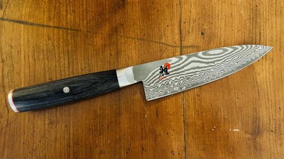 [This review was collected as part of a promotion.] I love the weight and balance of the smaller chef knife. I’ve been working with it for three years now and feel like it does a better job and holds its sharpness better than the Shun knives I also work with.