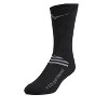 A: The Volleyball Runbird Crew Socks are made of 68% Polyester, 29% Nylon, and 3% Spandex.