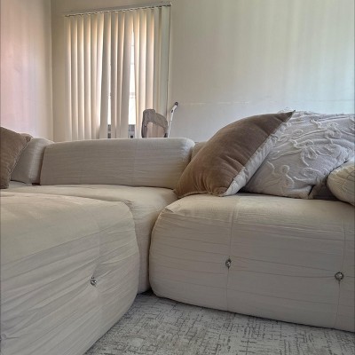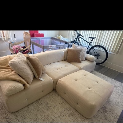 - 【 Modern Minimalist Sofa】 The modules of the sofa defined the aesthetics of an entire era of interior design, reversible tufted sectional sofa with wide and deep sitting depth, it is suitable for both sitting and lying, paired with comfortable velvet fabrics, beloved by millennials for its flexible feel, the comfy velvet sectional sofas with ottoman create endless possibilities to adapt to every space and need.