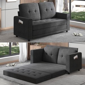 Mjkone Pull Out Sofa Bed, 3-in-1 Loveseat Sleeper Sofa Bed with 2 Pockets, 5.5" Tri-Fold Multi-Function Futon Sofa Bed, Convertible Fold Out Sofa Couch for Living Room/Apartment/Office