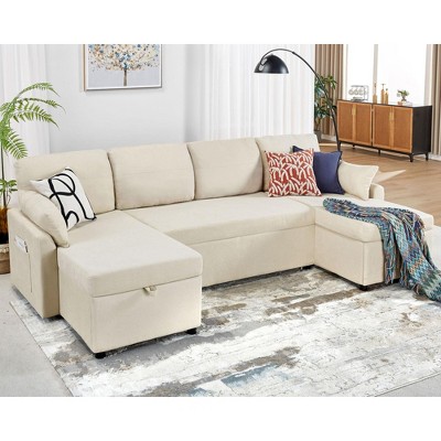 Mjkone W98" 4-Seater Modular Sleeper Sofa Bed with Storage Chaise,U-shaped Sofa with Pull-out Bed