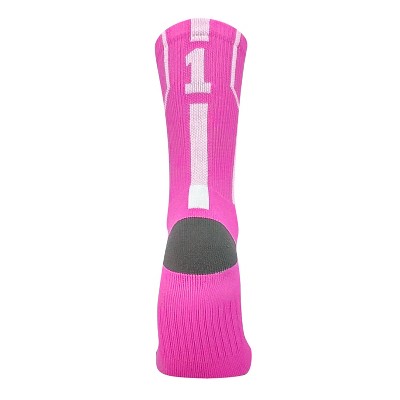 Mk Socks Player ID Jersey Number SINGLE Crew Sock - Hot Pink, White