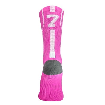 Product Name: Mk Socks Player ID Jersey Number SINGLE Crew Sock - Hot Pink, White