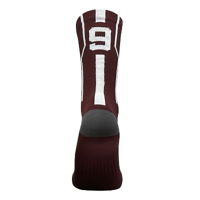 Mk Socks Player ID Jersey Number SINGLE Crew Sock - Maroon, White