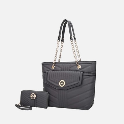 MKF Collection Amy Color Block Vegan Leather Women’s Tote Bag by Mia K - Charcoal