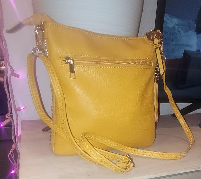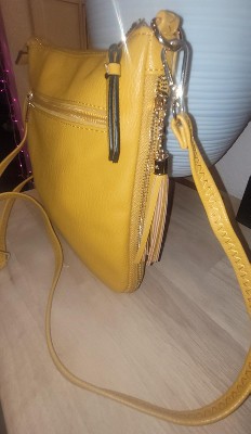 Love everything about this purse. The color, size, quality, design, value. I can fit 2 glass cases, my cellphone, keys, lipstick, hand sanitizer and my coin purse with no bulge or difficulty closing the main compartment zipper. There are 3 additional outer zippered compartments, and an interior. The strap is adjustable to be an over-the-shoulder length all the way up to a cross-body of varying lengths. It adjusts with a slide versus holes and a buckle. There are cute design details like a tassle and several medallions. It is slim, so it lays next to my hip without adding bulk. My previous 3 purses could only accommodate my cellphone, keys and coin purse, so this is a major size upgrade for me.