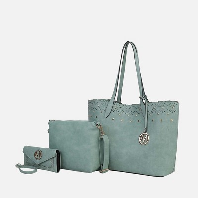 MKF Collection Aylet M Women's Vegan Leather Tote with Matching Mini Bag and Wristlet Purse by Mia K- Light Blue