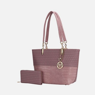 MKF Collection Cameron Tote Bag Stylish Vegan Leather Handbag with Spacious Design by Mia K- Purple