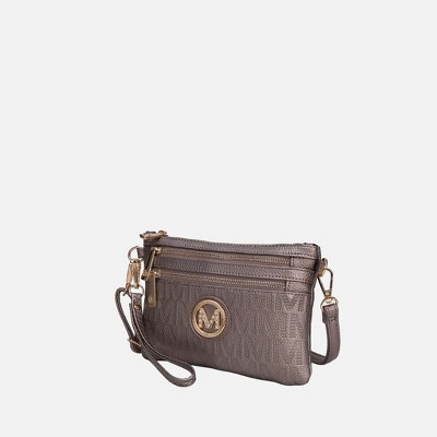 MKF Collection Cleisy M logo Embossed Vegan Leather Women’s Sling Bag by Mia K - Pewter