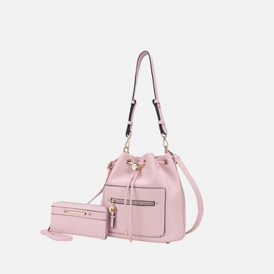 MKF Collection Diva PVC Clear Tote Bag with Tweed Bucket Bag by Mia K- Pink