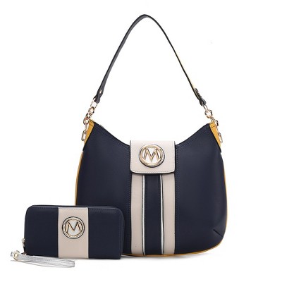 MKF Collection Jaseli Women’s Hobo Bag with Wristlet Bracelet Keychain with a Credit Card Holder by Mia K - Navy Mustard