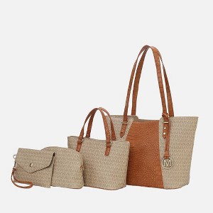 This 4-piece coordinated set includes a matching mini tote, compact pouch, and wristlet, offering functionality and style for any occasion. The mini tote is perfect for traveling light while making a bold fashion statement. The compact pouch is ideal for organizing makeup, tech accessories, or small essentials, while the wristlet ensures easy access to cards, cash, and keys.