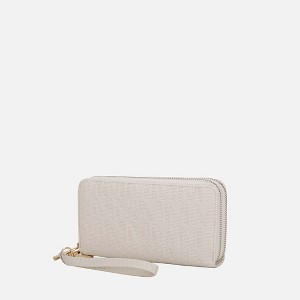 The Lisbette Wallet is a luxurious, compact accessory made from high-quality materials with embossed detailing and gold-tone embellishments. It features a double zip closure, ample compartments for cards and cash, and a removable wristlet strap, offering both style and convenience.