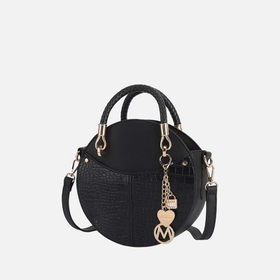 Crafted from premium vegan leather, the Mallory Crossbody combines elegance with everyday functionality. Designed with luxurious gold-tone embellishments, this chic bag features a unique circular silhouette with a secure top zipper closure. Its two-tone snake-embossed texture and matching trim add a stylish contrast, while hand-painted edges enhance its refined look. The adjustable crossbody strap ensures customizable comfort, and dual top handles offer versatile carrying options. Stay organized with two interior slip pockets and a zippered pocket adorned with the signature Mia K. Collection plate. A signature metal emblem at the front completes this sophisticated design.