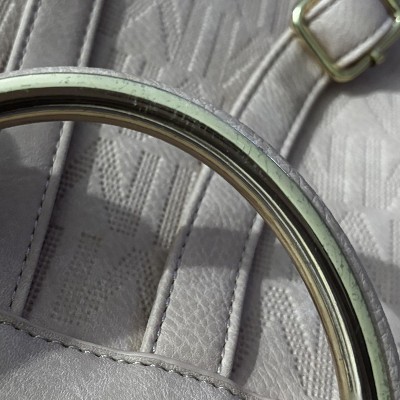 Very cute purse and the color is exactly how it appears online. HOWEVER,…there is damage in the handle. NOT CUTE! Lots of nicks, scratches, scuffs, etc. There should have been tissue paper, thin cardboard or something wrapped around the handles to prevent them from rubbing together or getting damaged prior to purchase. The purse isn’t the issue, it’s how it was handled and wrapped.