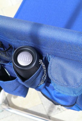 [This review was collected as part of a promotion.] I got to review sports chair navy and I like that it is convenient because there is pockets to put your glasses or water bottle which is good. I also like the table it is convenient too. i can bring this chair to the park or to the beach.