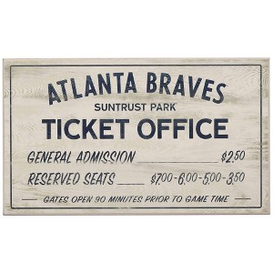 God bless America! Reflect on your special memories at Truist Park with this vintage washed MDF wood sign. With blue text detailing long-ago ticket prices, this retro wall art is the perfect addition to your game room, man cave, or workshop.